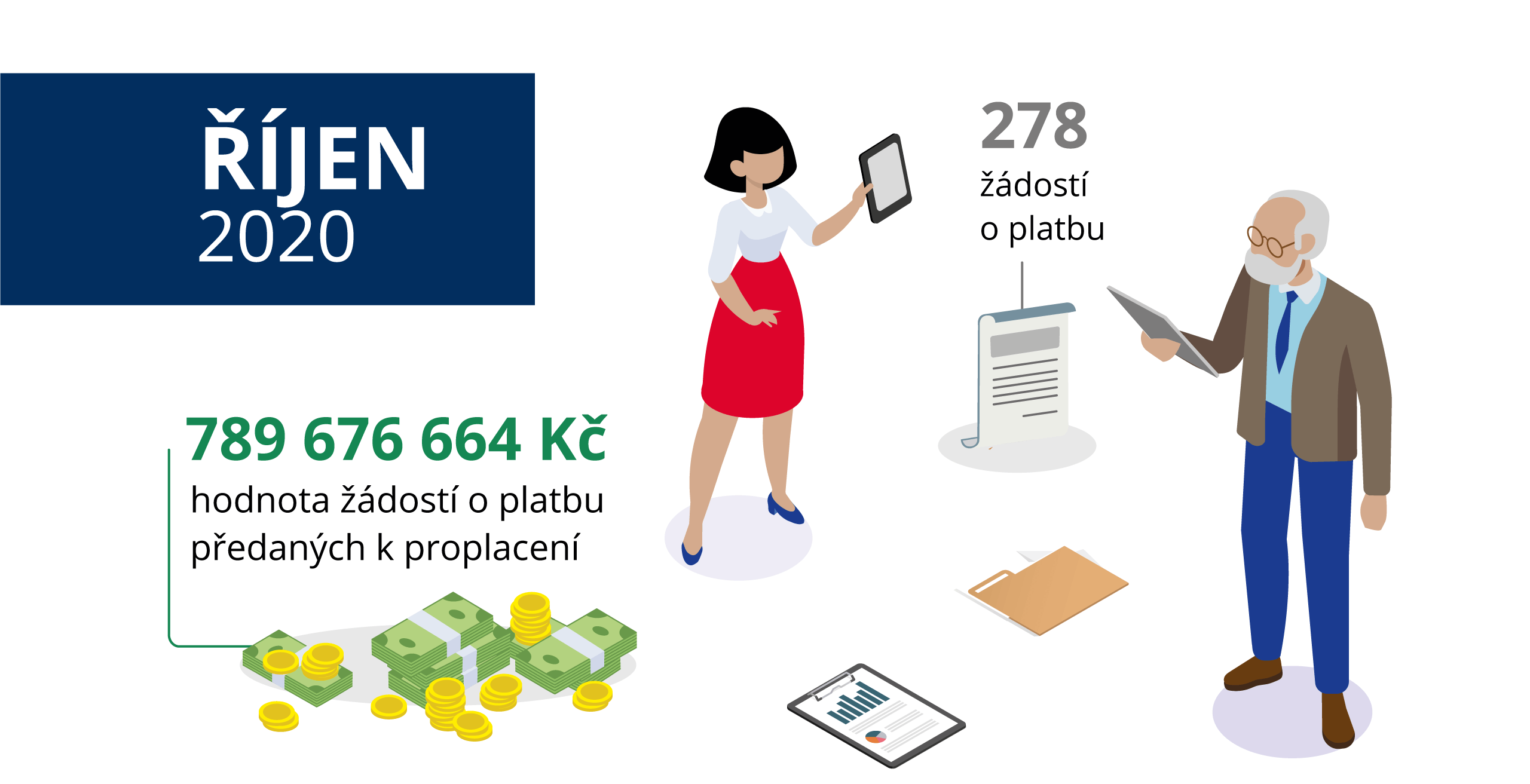 Příjemci dotace nám v říjnu předložili žádosti o platbu v celkové výši požadované dotace 728 milionů korun.